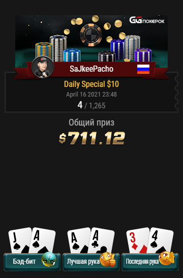 Финишировал 4-м, заработано $711.12