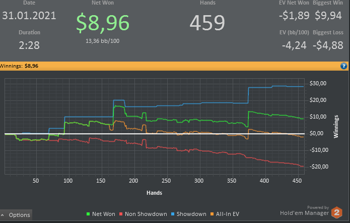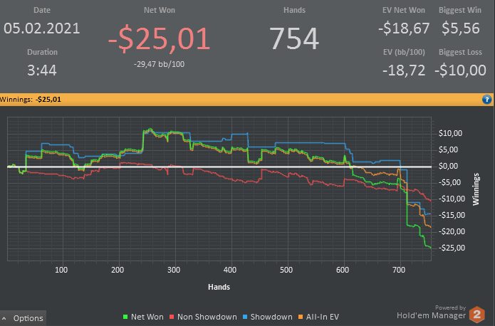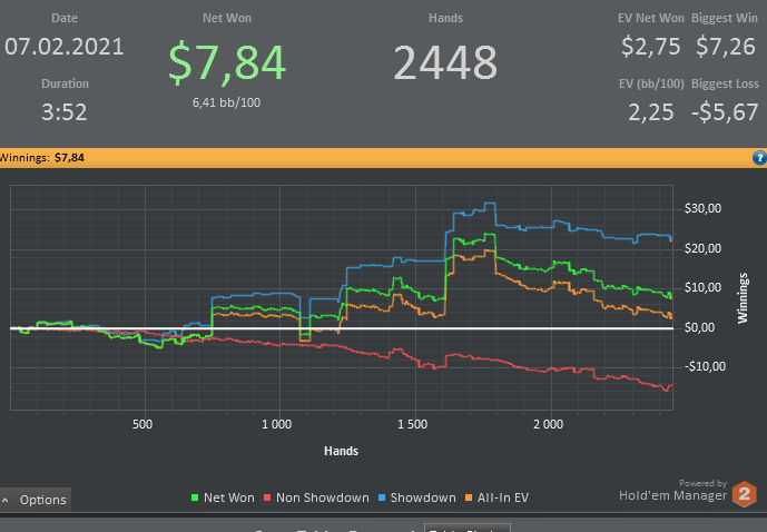 Салют! Еще жив) покер со мной и есть даже результаты, но для начала боль. Боль которая длилась ровно 6 месяцев в промежутке начала января (начало моей покерной карьеры) и до конца июня. Боль под названием зум. Как каждый день замазываясь и обмазываясь по уши. Я садился вновь и вновь, чтобы все отмазать и так каждый день на протяжении полгода. Как сейчас понимаю мной двигало эго, которое говорило "ну ты чего такой слабый, даже 1лвл не можешь побить, о какой покерной карьере можно говорить ?) И так было бесконечно, то что-то плюсуя, то через два дня все сливая, я садился и был одержим все вернуть))). Если в каком-то промежутке допустим дней 5 я беспощадно заливал, то я шел на рег столы, там была абсолютная такая же фигня, что возвращаясь начинал плюсовать, но по происшествию попадая в минуса вновь возвращался в зум. И так я играл около нулевую бороду, где-то фиксируя прибыль, где фиксируя минуса. Чуть ли не каждую неделю менял свою игру, от агрессивной игры по красной, до тайтовой с ввсф 39. С впипом под 30 и заканчивая впипом 19. С 3бетом 4 или игрой с 3бетом 15. Пытался найти ту золотую игру. Как нестранно, когда начинал что-то меня сразу ловил приятный стрик, но потом заливал беспощадно улетая за сессию в течении часа по 5-10 баинов. А потом еще в течении 7 часов пытался отмазать все это, когда получалось, а когда ловил дичайшее разочарование. Но я не сдавался, понимал, что нет шага назад. Игра была безмерно интересна и здесь надо было идти до конца. Играл обычно 4 стола зума, а бывало и все 8. Грезил, что вот начнет получаться. Но я себя только закапывал. Успел поиграть плотно лимиты 2,5 и 10 везде получается сыграл в слабый плюс кроме 10, если брать 2 и 5 то там хоть какая-та игра получалась. А вот играя нл10 там у меня хад не работал и получается я катал в слепую, как сейчас чекаю статы и мне плакать охота, сколько было отклонений, сколько было ошибок, ужас. Как помню май выдался очень плохими, а июнь самым худшим месяцем. В зуме на всей дистанции перебирал. А вот в июне начало все выравниваться, словив нереальный стрик когда меня переезжали везде. Было большое количество кулеров. Я шел на рег столы и там я тоже недобирал, я сидел и думал, блять что за АД) Как помню тогда деньги заканчивались, жил на съёмной квартире , бр был баксов 100 на пс. Наличкой было рубля 2-3. Было две недели оплаченной квартиры и много еды и челендж от пс на 160 баксов который я намеревался отыграть и залутатать его на жизнь. Но из дичайшего стрика я слил эти 100 баксов)) Собрался- попросил чтобы мне заняли на игру и на некст день приключилась такая история, писал это сообщение другу