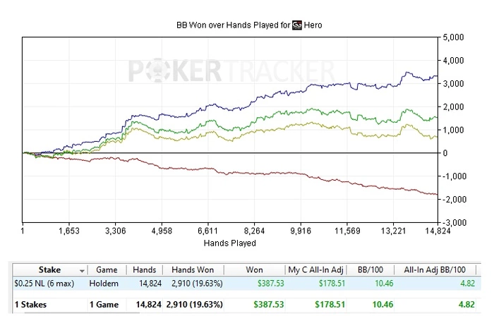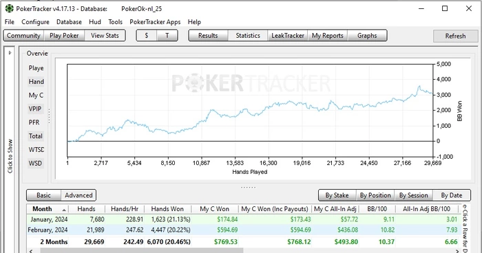 С января изменения кардинальные...еще в октябре-ноябре смотрел обучающие воды по работе над своей игрой, но все было как то лень) нужно было очень глубоко погрузится в программы статистики, создать кучу фильтров и статов, в итоге в январские каникулы потратил 8-10 дней с утра до вечера, 120+ часов только на работу со статистикой, без открытия столов...