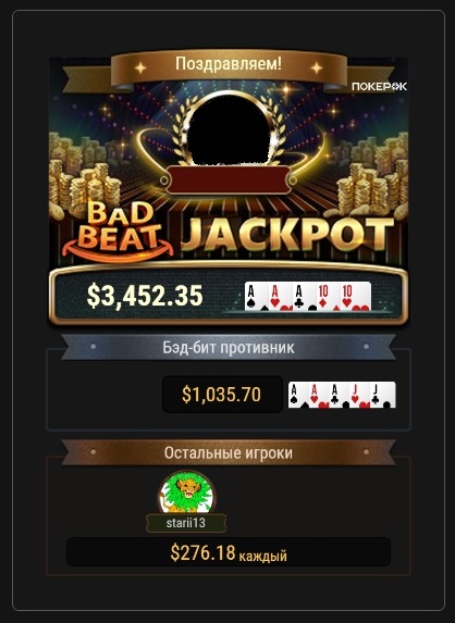 Итог месяца был бы минусовым, но получил бэдбит джекпот, сперва как участник стола, а спустя несколько дней, и как главный неудачник, что безусловно радует 😉