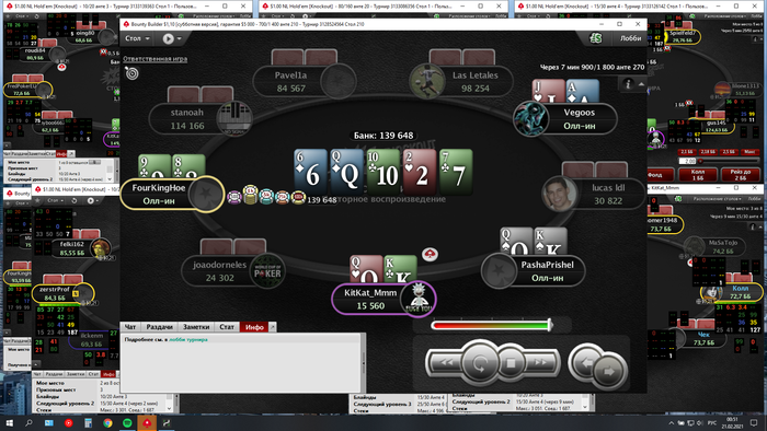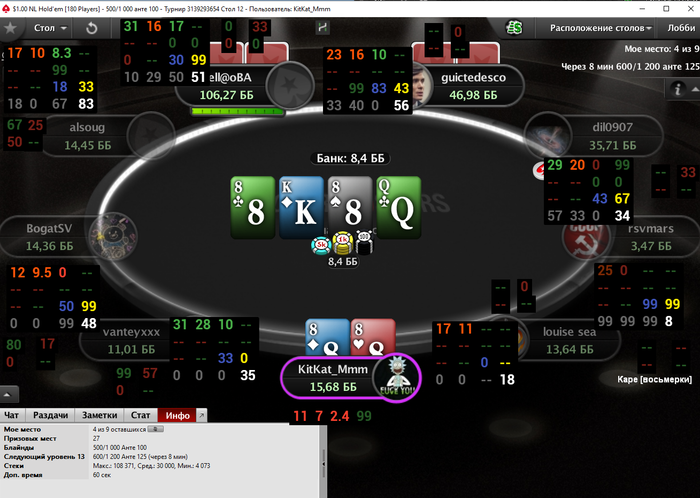 Была еще забавная раздача на предфиналке в которой я не участвовал, но представьте как широко открыл глаза игрок с 1010 (это был префлоп all-in)