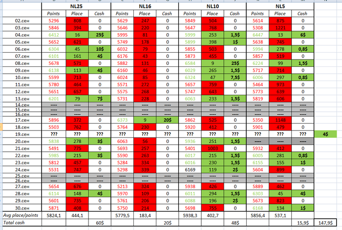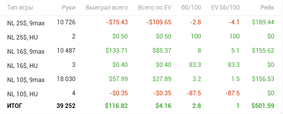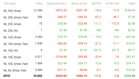 - НЛ2зум ГГ - в районе 26-35$ (конкретно не сосчитать, пока не хочу париться с конвертацией рук для Х2Н, по кассе проблемно отследить, потому что чутка лудил МТТ и пару-тройку спинов);