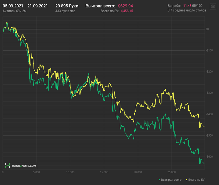 Если интересно пробить на шарке, то смело заявляю - график олтайм мтт на старзах минусовый, но не сильно, и основная часть минусов - это турниры с дорогих тикетов/сатов и т.д, которые мне никогда нельзя было играть по БР)