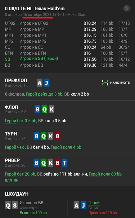 Самое обидное, что я не смог после сессии найти эту раздачу в H2N. Перелопатил всю сессию - 1.4к рук. Её просто нет . Походу из-за дисконнекта не сохранилась. Так бы скинул сюда на память) Но и свои плюсы тоже вижу - красная не просела ))