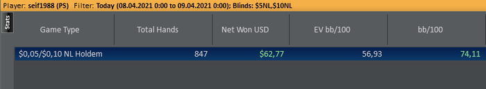 HM опять глючит. Он 600 рук вырезал, поэтому стату нет смысла показывать, вчера по факту отыграл минус 2БИ.