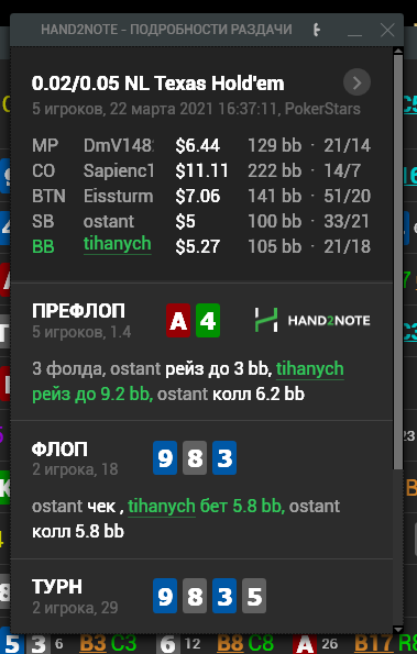 Но отложенный блеф на ривере мне чуть больше нравится.