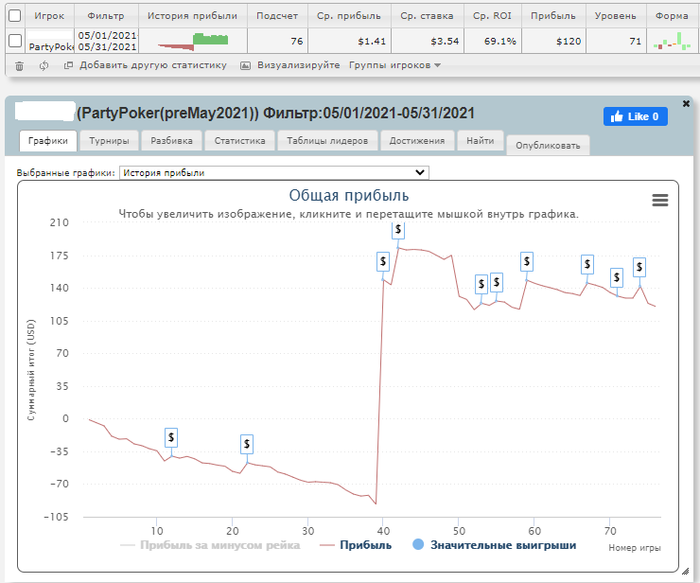Май выдался тяжелым в плане работы. Много отдыхал и занимался не покерными делами. В итоге результаты так себе.