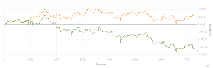 Это получается либо 70-80 часов катки, либо 100 часов. В общем, нужен минимальный стандарт 20 часов в неделю, т.е 5 дней по 4 часа, если не добил 20 часов, доигрываю в 6 день. Обязательно 1 выходной от покера совсем.