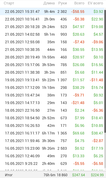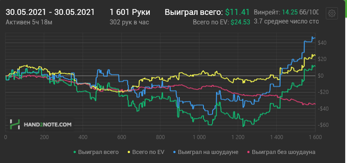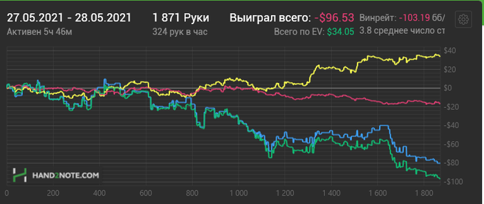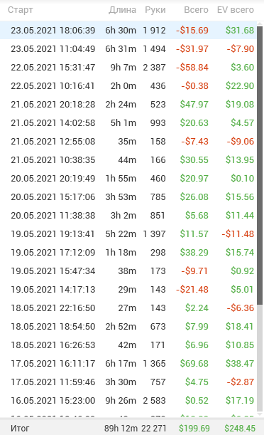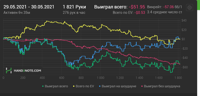 postflopmagic, да это не жесткий стрик) Жесткий стрик это когда ты играешь 20к+ рук по ев в 20+а а по факту в минус 20-30а и это на лимитах до нл25, что может твориться на нл100+ даже страшно представить)