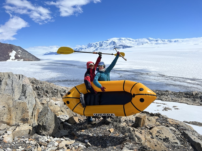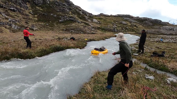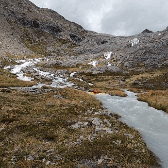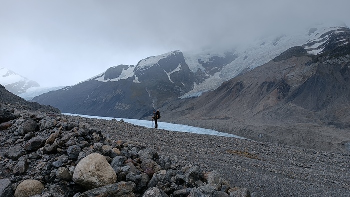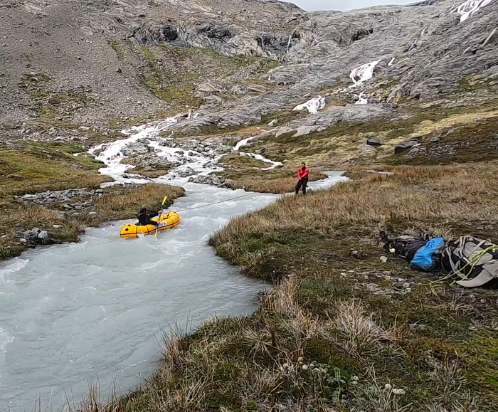 Но для нас сегодня день только начинается. Сначала возвращаемся за Машей и стартуем вниз по леднику Chico до первого укрытия, чтобы рано с утра перейти вброд пока вода не поднялась в той речке. Пакрафт то был Тобиаса.. Если не успеем, то потерям целые сутки.