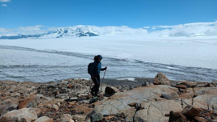 Нас высаживают на берег со всем снаряжением, чтобы сэкономить топливо для эвакуации Тобиаса. Здесь есть укрытие в виде капсулы, которое установили для ученых - можно передохнуть от ветра и зарядить телефон. Кто-то, переживая, пытается рассмотреть удаляющуюся лодку, а кто-то, найдя на безжизненных скалах углеводы, медитативно собирает Chaura Blanca - морошка Патагонии. Я обожаю её.