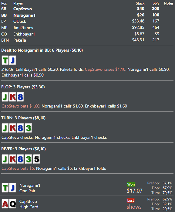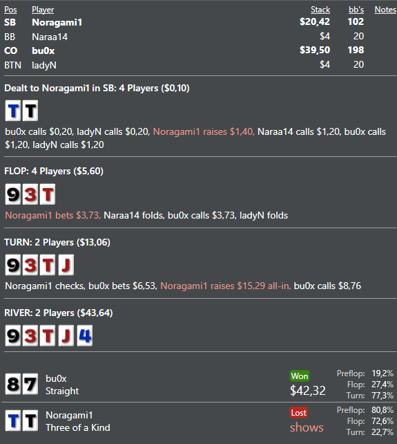 Тёрн: я делаю огромную скидку на то что это рыборегуляр и он и по такому сухому борду не умеют скидывать JJ-99, если исключать андерпары , то сами себя вельюбетим , против рега достаточно 1.5-2 улиц бета и то 2 улица уже будет в блеф , на тёрне уже можно чекать в пот контроль 80/20 , ошибка.