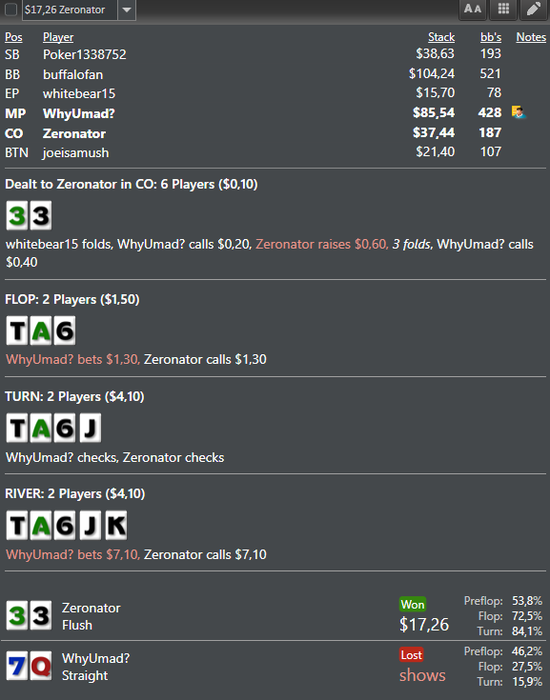 Катал немного, было много запары по учёбе , да и сейчас осталось , заебали уже качели лучше по чуть-чуть в свои 10бб фигачить , а не качели оп стрик в 20би на хай лимите потом отмазка в 3 недели и опять по новой, хз чё было бы если я играл меньше чем в 10бб , по 30+ би улетал бы.