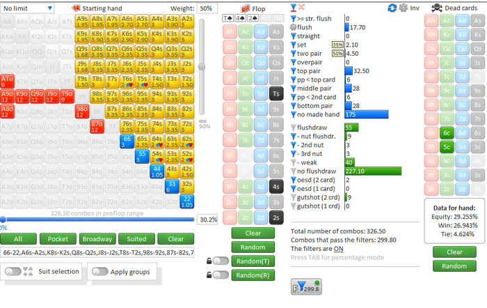 Флоп: вроде хорошо , но сетов я много вижу , единственное что он слоуплеит это натс ФД как показала пред раздача. ситуация плохая, не думал что я настолько плохо стою против его ренжа