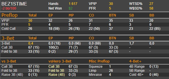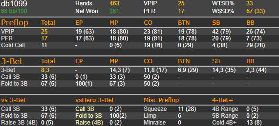 Кстати если чуть-чуть больше колоть 3беты , то буду полностью не удобным оппом), вроде чек фолд всё ниже становиться , а не как ch/f 71% , щас 66, очень много бб собираю от блефкетчинга когда делаю защищённые чеки