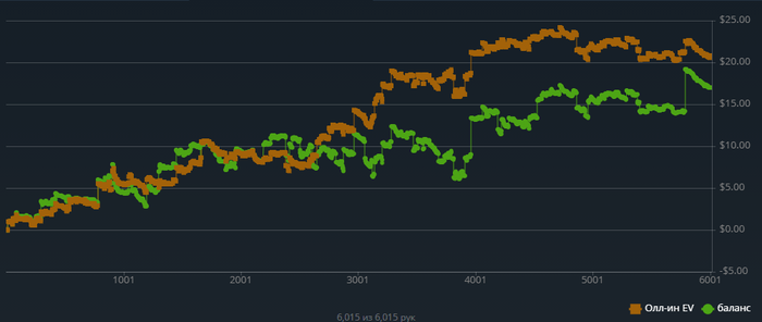 Последнюю неделю играю очень плохо, много проигрываю, катаю в ярости. Вывел 100, чтобы охладить тарханье, 50 проиграл, БР 420. За месяц в целом даже очень хорошо, иду получается + 460