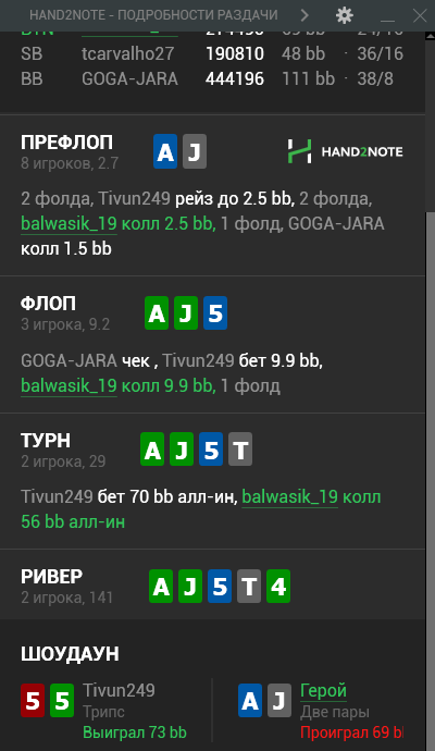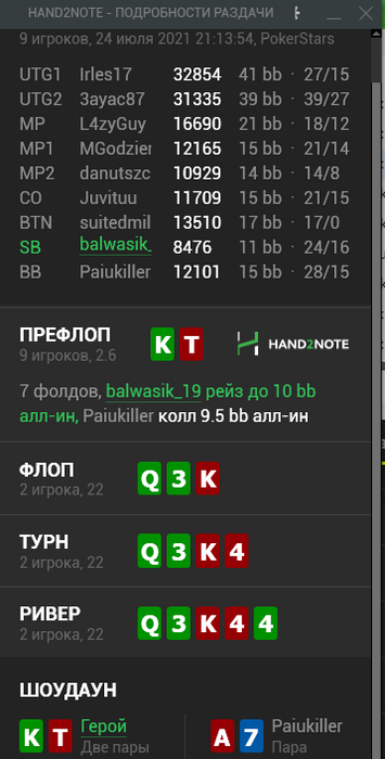 Стилим на ББ, получаем колл, начинаем растраиваться, но зря) Но ближе к концу турнира снова пиханина...