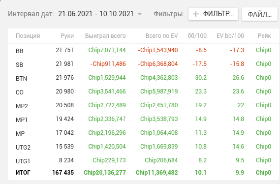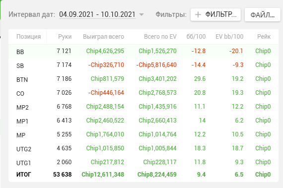 Поспал 4 часа, вроде не так уж плохо, трена началась, получил рекомендации по румам(об этом позже), вроде все хорошо пока. Тренировку кстати брал у CaHu4 Доступное обучение для начинающих | Форум о покере (gipsyteam.ru) за 30$ на 1.5-2 часа. За свою цену это топ, тренер шарит, да и для моего уровня в общем сложно было не угодить. Но тренировка на мой взгляд провалилась. Провалил ее я. Из-за недосыпа и избытка информации мой мозг начал плыть, зачем-то начал спорить, вообще не слышал, что мне говорят, затем просто замолчал и начал поддакивать, когда что-то спрашивают. За что тренеру респект так за то, что он закончил тренировку, несмотря на то, что я спорами и своими затупами ее растянул и получилось больше 2.5 часов. Так что тренер за свои деньги 10/10, а тренировку записал, пересмотрел, +EV получил, и на этом хорошо, хотя хотелось бы конечно, чтобы был какой-то диалог. Если конкретно то меня научили трибетить и показали, что я дикий телефон, о чем я подозревал, но не думал, что настолько. Винрейты подросли, правда не сильно, подросли бы больше, но я начал во фриз-турниры прыгать в лейт-реги(по совету тренера), то есть упускал возможность заработать стек 150 бб от упоротого фиша на первом уровне, но зато экономил время. Винрейты после трени прилагаются: