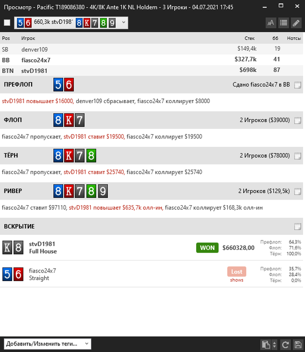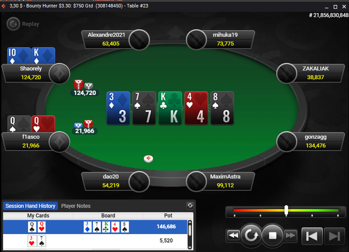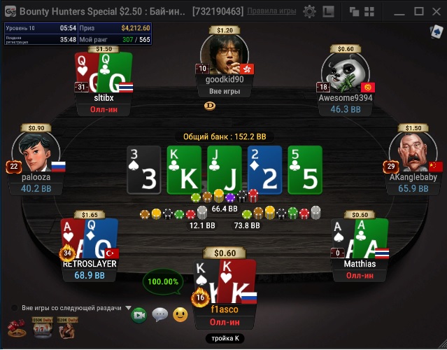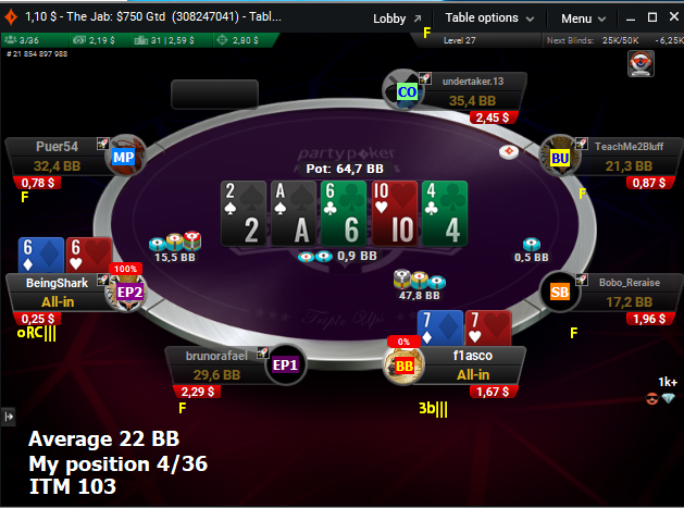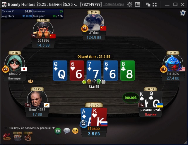 В общем, сегодня начало выдалось непростым и, честно говоря, хотелось после 5 турниров закрыть всё к херам и сделать выходной. То ли я так вкатываюсь в сессию всегда, тильтуя не по делу, то ли реально есть повод. Пролистав выше, вы увидите скрины где меня 2 дня подряд переезжали карманные 66, находя в колоде третью 6, так вот, сегодня был ещё один такой день. Ну чисто дьявольщина за столами, пора бы экзорциста звать.
