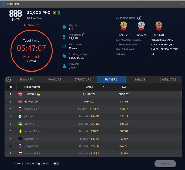 Представьте такую ситуацию: на свидании ты потратил кучу времени, сил и денег на неё и всё вроде бы хорошо, она вообще счастлива, и ты то уже лыжи навострил, " ну сегодня точно "что-то будет"" и вы приходите к ней домой, а у неё трое детей от прошлого брака... И ты вроде такой "ну ничего страшного", а внутри "блять ну почему таааак". Вот сегодняшняя сессия это ровно такой пример. 3 пред финалки, но нигде нет даже топ 10. EV-шки и ББ/100 просто жопой жуй, а деньги ну будто бы где-то по дороге растерял. Конечно, не очень мне нравится катать после рабочего дня, но, к сожалению, такая неделя нас ожидает, ибо в 1-ю смену. С одной стороны готов и говоришь себе " я в порядке", но как то тяжело всё и душно выходит.