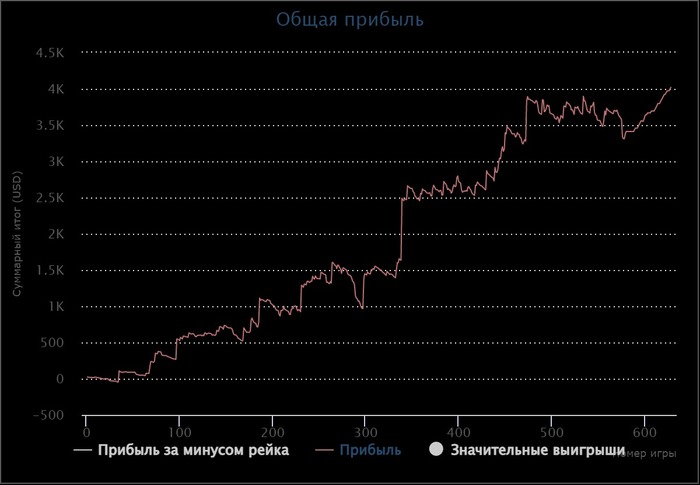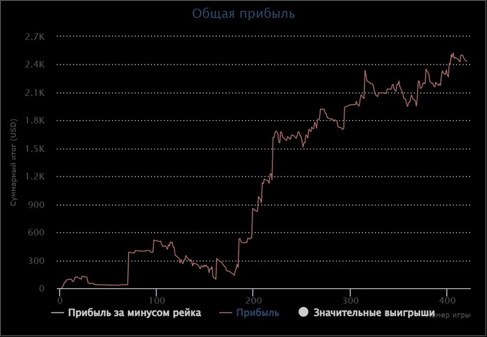 Есть вопрос связанный с корректностью графика: реальный плюс по кассе 1.89 К включая рб, а график на 2.5 К без рб. Чекаю графики любителей в шарке, а они околонулевые, кто-нибудь сталкивался с подобными расхождениями, если да, то с чем они могут быть связаны? Буду благодарен.