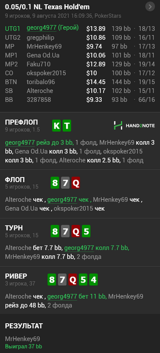откуда ты взял эти руки у чела играющего 17/13 колящего на мп на фул ринге? На шмаксе ниты такие руки не коллят даже на баттоне (ну может АТ в редких случаях) не говоря уже о ранних.