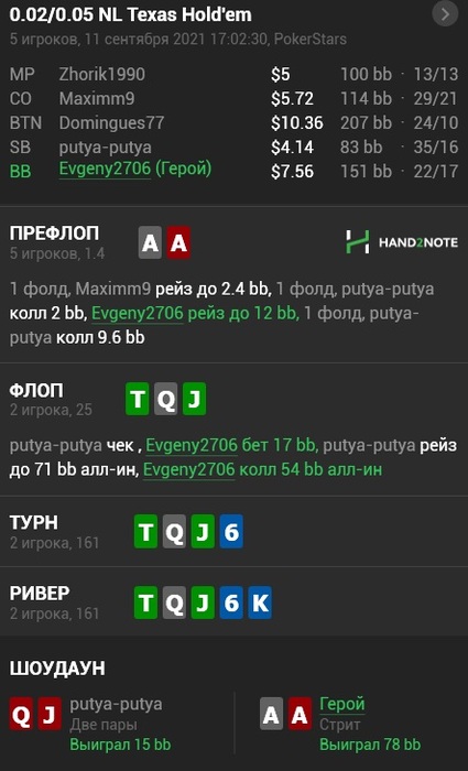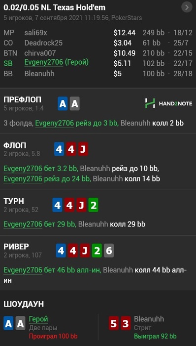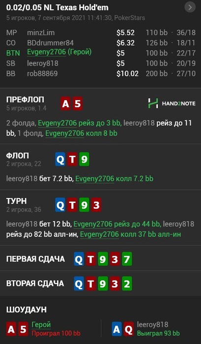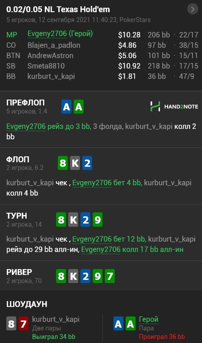 по выходу придерживаюсь плана (ставлю блок-бет, имея очень тонкое вэлью) и падаю на пуш.