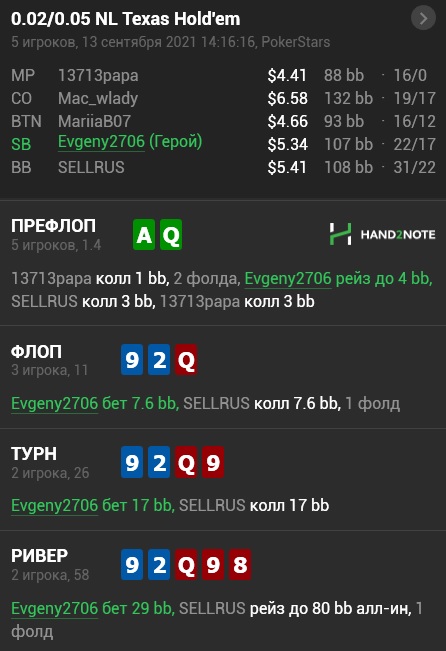 Оптимистично 3-бетнул MP. Вообще с батона AQо входит в рэнж 3-бета, но тут чел 16\11, наверное, нужно было выкидывать.