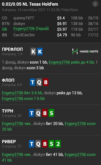ну ок, флоп протаскиваю, у оппа много дров, много блефа, средней силы рук. А у меня какие-никакие бэкдоры.