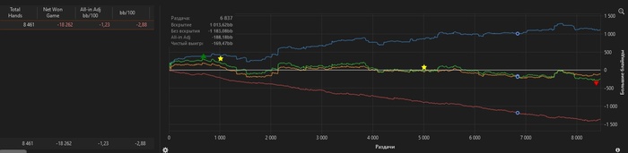 Ребят всем добрый день. Из-за военных действий пришлось выехать с Донецкой области, в другой регион Украины. После долгого перерыва опять вернулся в покер. Отыграл без стримов месяц в режиме 6 столов, параллельно вспоминал все тонкости покера и решал "насущные вопросы на новом месте жительства."