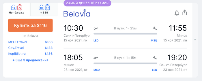 Санкт Петербург - Минск - Санкт Петербург - от $116
