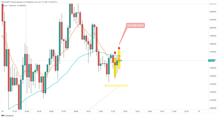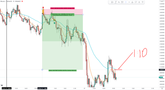 Переносим стоп за хай красной свечи, на соотношение 1:10