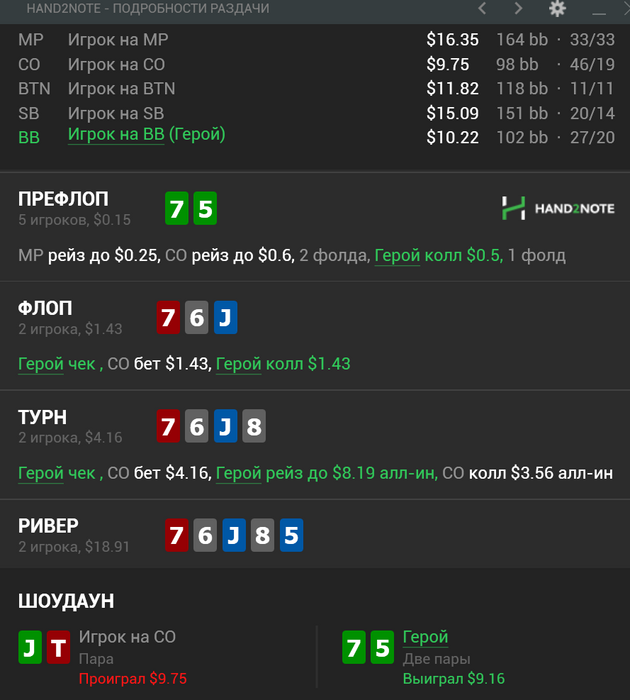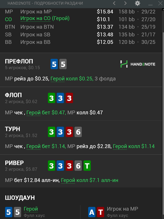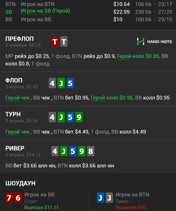 PierreDunn, переклинило и была усталость, как сказал выше почти одна из последних раздач после которой я решил закончить сессию преждевременно.