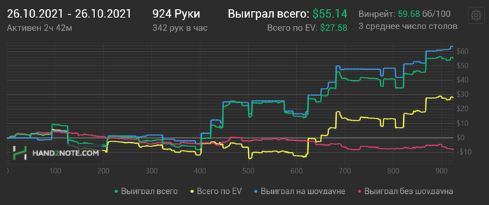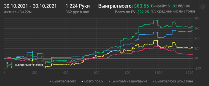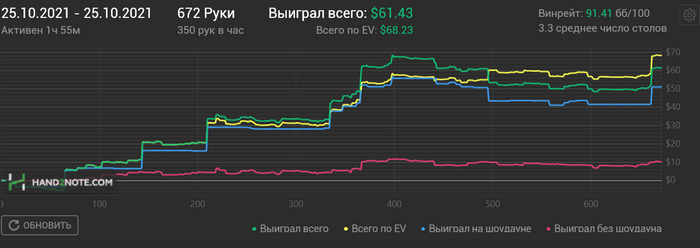 Сегодня выходной, отыграл 3.5ч, хочу сделать перерыв до 2-3 ночи и продолжить. Думаю СНГ рекреационные игроки уже пошли спать, а западные ещё не начали :) Почему решил не объединять 2 сессии в 1 пост? Появились интересные на мой взгляд раздачи, так как я в них испытываю определенные трудности, поэтому решил поделиться ими сейчас. Ну и очевидно, почти всегда будут раздачи плохо сыгранные мною, никто ведь не хвастается хорошими раздачами )).