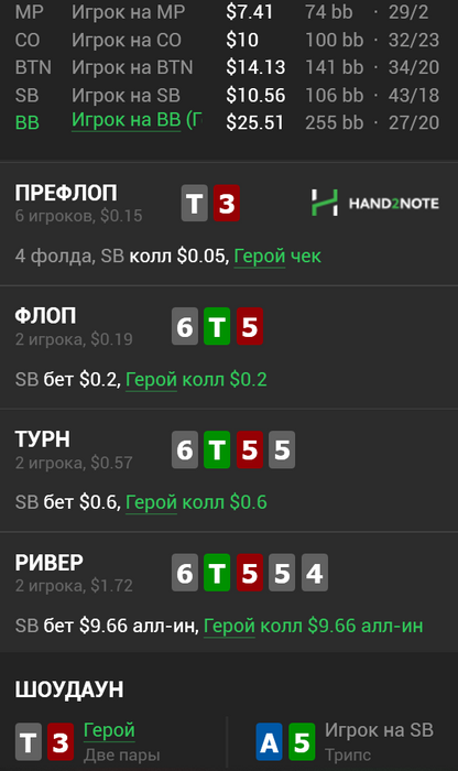 P.S Да, я знаю, раздачи у меня скучные по сравнению с тем, что выкладывают тут регуляры, но у меня как-то сложных ситуаций не возникает, хоть я и стараюсь запомнить. Или может банки не большие, поэтому я тупо фолжу пограничные ситуации против норм оппонентов. Не знаю, тему не хочется таким засорять.