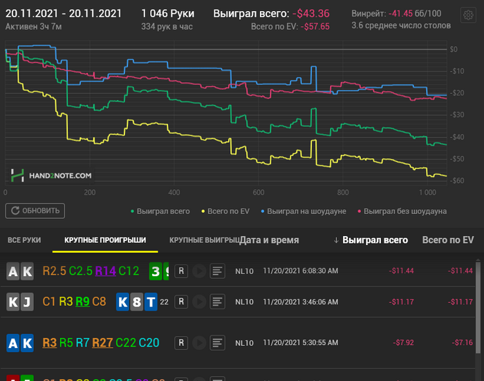 ПОСЛЕ перерыва решил продожить но на лимит ниже нл-10 глянуть как попустила или нет залил 4-баина на нижнем лимите о жесть не мой день. хоть практика есть что если все не так идем ниже а то минус был-бы просто печаль