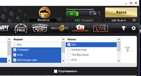 касса сегодня на Partypoker.