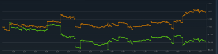 На ГГ график не показательный (постоянно расхождения с деньгами по кассе), там +0,98$, итого вторую неделю в плюс завершил) На ГГ играть в ближайшее время не планирую, пойду полностью на Старзы.