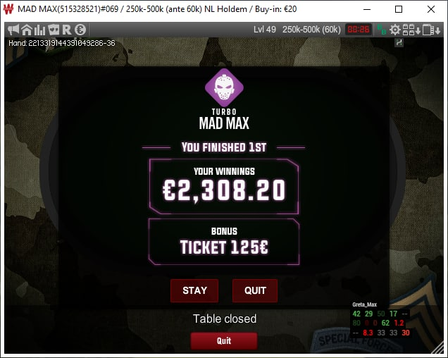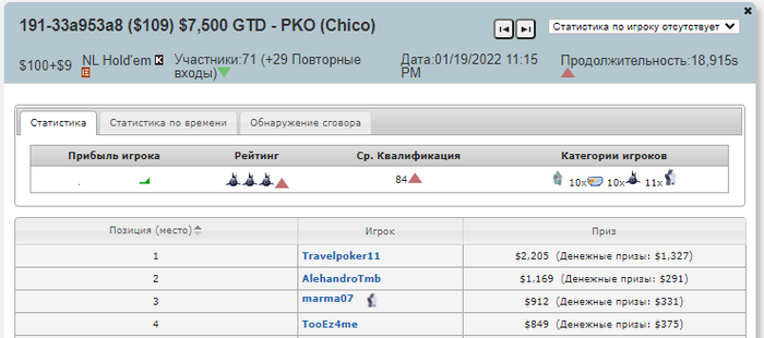 И вчерашняя сессия и 4 сессия на новом руме в котором я начал играть с этого года и там же первый топ 1 в этом году , так что + мораль ) Были еще не плохие дипы вчера но манки чуть не хватило, но в общем и целом все довольно не плохо, завтра опять в бой