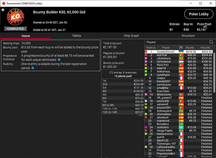 Как то так. В феврале попробую откатать 800 турниров, а там дальше уже как Бог даст)
