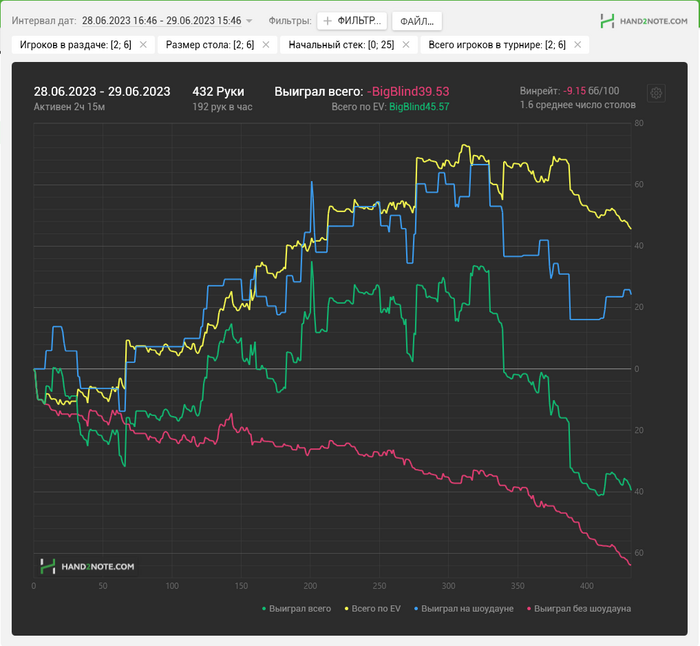 Из приятных моментов: Я выйграл билет на Venom через сателлит за 95$. Но пока не чувствую в себе сил его играть. Это самый дорогой байин, который я буду играть. Понимаю, что все может закончиться банальным кулером или ошибкой с моей стороны, тем не менее очень бы хотелось попасть хотя бы в ITM. Поэтому пересмотрю все трени по мтт Федора Тренцева ( https://www.gipsyteam.ru/profile/lorem ) Постараюсь запомнить полезную информацию и играть. Не могу я сесть и играть такой дорогой турнир на отъебись, ничего не зная.