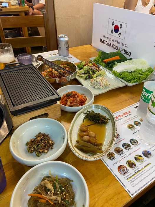 За год проживания в Сайгоне у нас с девушкой появилось два любимых места, моё - корейское BBQ, где можно отведать свежей говядины в прикуску с разнообразными безлимитными закусками (панчанами). Любимое место девушки - корейская баня. О ней я писал выше. В добавок к этому, живем мы в 5 минутах езды от корейского района, который в сайгонской завесе смога и кучи пластика как глоток свежего воздуха, здесь хочется находиться (если на улице меньше 35) гулять в парке, глазеть на собакенов и не слышать граммофон местной бабули, продающей банми со своей макашницы.