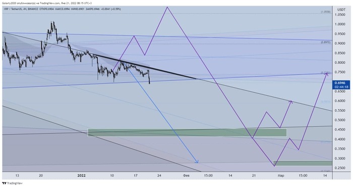 Я предполагаю, что дальше мы имеем два равновероятных сценария, отображенных на графике.