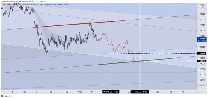 Также на начало весны приходится важное пересечение углов, что в нашей Торговой системе означает - переходный период, сдвиг вероятностей, а также эта зона является сильным магнитом. Полагаю, ценовый уровень 1.11250 будет протестирован.