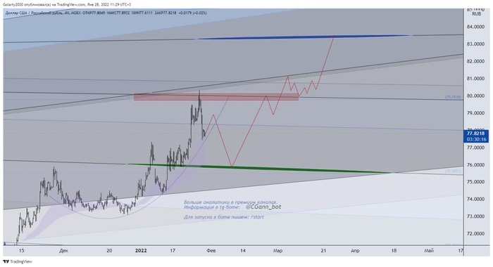26 января мы рекомендовали (https://t.me/GTrading/2542)сбрасывать часть долларов в пользу рублей по 79-80. Результат на графике.