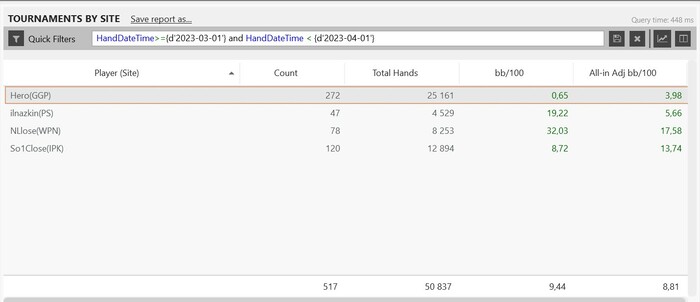 Последние 100к рук с фильтром