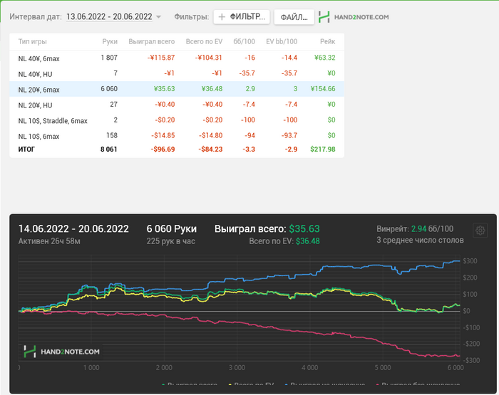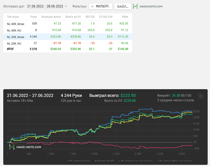 Залупа лягушки. Только так можно назвать эту неделю в мире покера(хуёкера). И снизу и с боку и с верху, везде переезжали. Количество рук наигранных радует, что даже не смотря на нулевое вэлью и никакое попадание в доски(“Черт побери, Харлей, если бы ты стрелял в кучу говна, то даже брызги бы не полетели»!), я отлично справляюсь с диспой и хаваю всё что она приносит.