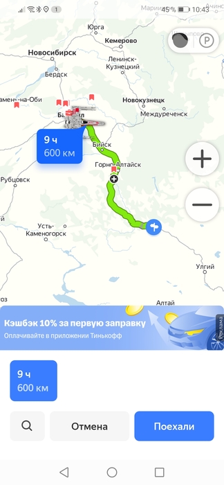 Подъём. Расстояние 600 км, время в пути 9 часов. Всегда бесили навигаторы и законы физики. В голове начинают вспоминаться задачки, машина едет со скоростью 100 км в час, через сколько она проедет 600 км? Ну как бы через 6 часов логично, а навигатор говорит 9.