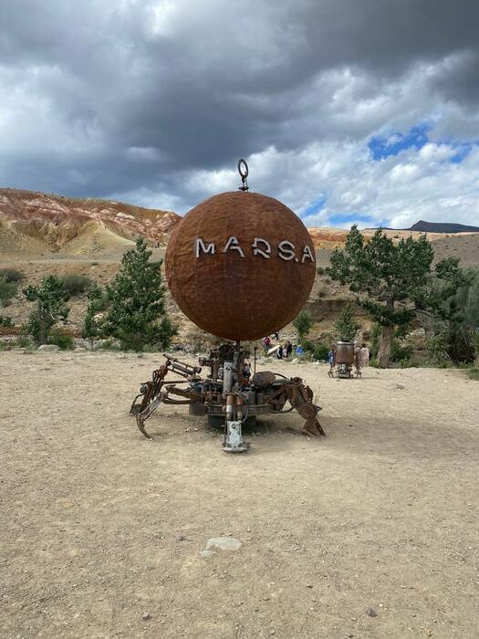 А ехали мы на Марс. Жена сказала там красиво, надо туда. Так вот подъезжаем (10 часов в пути), включаю навигатор, пишет. Вам осталось 10 км, ехать 53 минуты( сразу вспомнились задачки про машину) 10 км и 53 минуты. И ты опять такой чёёёёё? мы только что неслись 130 км в час, НО всегда верьте навигатору) У него Ж ОПЫта больше. Дорога просто в отличная для УАЗиков, а остальные плетитесь, но терпимо. Приехали. Взяли денюжку за просмотр Можно и бесплатно, но сука в горном за всё стали последнее время брать. Марс оказался просто красивой фотозоной, пространство для мысли и фотоаппарата для девочек. И ну чёт такое для мальчиков) Короче фото сессия