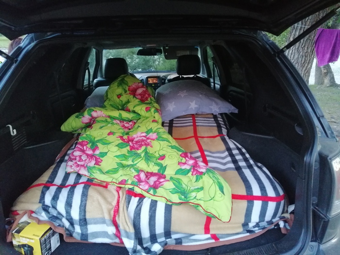 Нашли базу. Разбили лагерь, поставили палатку, только спать в ней не стали Сколько раз ездили отдыхать мечтали поспать именно в машине ( А то на кой хер она такая большая, а спать в ней нельзя) Купили всё необходимое, матрас, насос и вы знаете всё получилось. Правда прогревать её приходилось раза 2 за ночь, но всё же это кайф. Как говорится в тесноте да не в обиде.